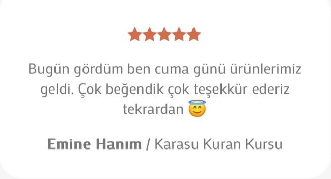 “Merhabalar ben kurumda değilim ama ürünleri teslim almış öğretmenlerimiz ürünler çok güzel dediler çok teşekkür ediyorum ellerinize sağlık.”